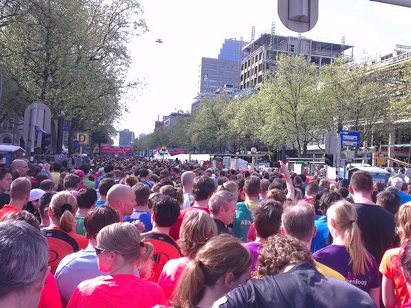 Op naar de startvakken bij het Hofplein dan maar. We zijn ruim op tijd, want ik start pas in de tweede wave. Nog even wat drinken en ook nog even langs het plaskruis, dat scheelt zometeen toch weer wat ballast.