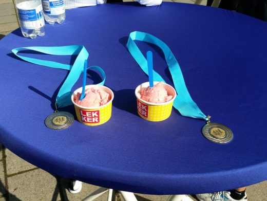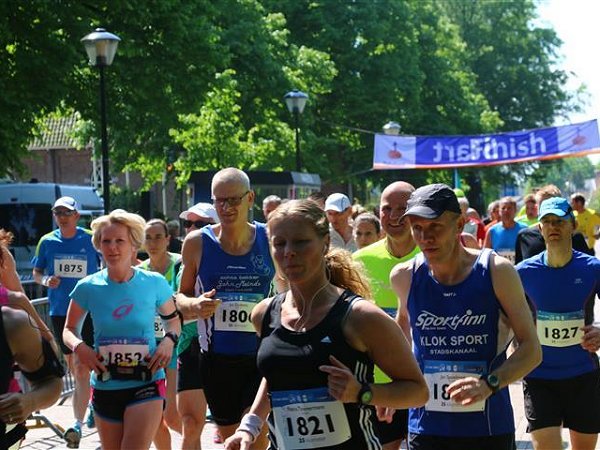 Afgaande op de statistieken loop ik vandaag een prima race, want met een eindtijd van 2:07:16 en een gemiddelde snelheid van 5:05 min/km kan ik niet anders dan zeer tevreden zijn. Toch voelt het anders. Door het warme weer zie ik flink af. Hier en daar staan gelukkig wel wat bomen ter beschutting, maar grote delen van het parcours lopen we in de felle zon. Vooral in de laatste tien kilometer moet het van diep komen en kom ik hijgend als een oud molenpaard over de finish.