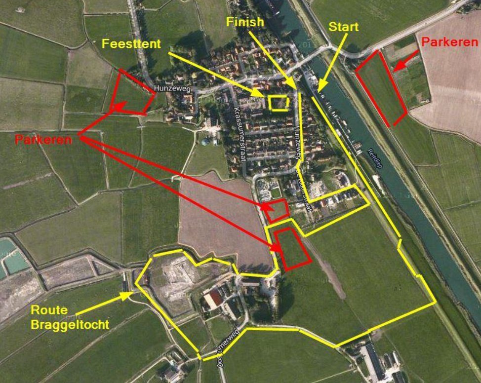 De Braggeltocht is een zeer vermakelijke funloop met originele elementen, zoals de hijskraan. De afstand van het parcours is gering, maar dat betekent niet dat de uitdaging ontbreekt. De modder in een aantal sloten is diep en zwaar. Daardoor kost het afleggen van het parcours nog voldoende moeite. Overigens legt het merendeel van de deelnemers het parcours wandelend af. Omdat Gerwin en ik liever rennen, melden we ons de volgende keer aan voor de wedstrijdloop. Niet om mee te strijden om te prijzen, maar om te profiteren van een betere doorstroming.