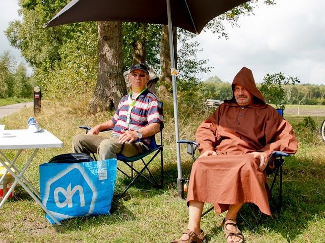 Op zaterdagochtend rij ik naar de start bij Hotel Boschhuis in Ter Apel, waar het al redelijk druk is. De auto kan ik niet meer kwijt op de naastgelegen parkeerplaats en ik parkeer uiteindelijk op een paar honderd meter verderop. Ik loop terug naar het hotel, schrijf me in en kleed me op het terras om. M’n tas geef ik af, die wordt met een bestelbusje naar Bourtange gebracht, waar ik hem na de finish weer kan ophalen.