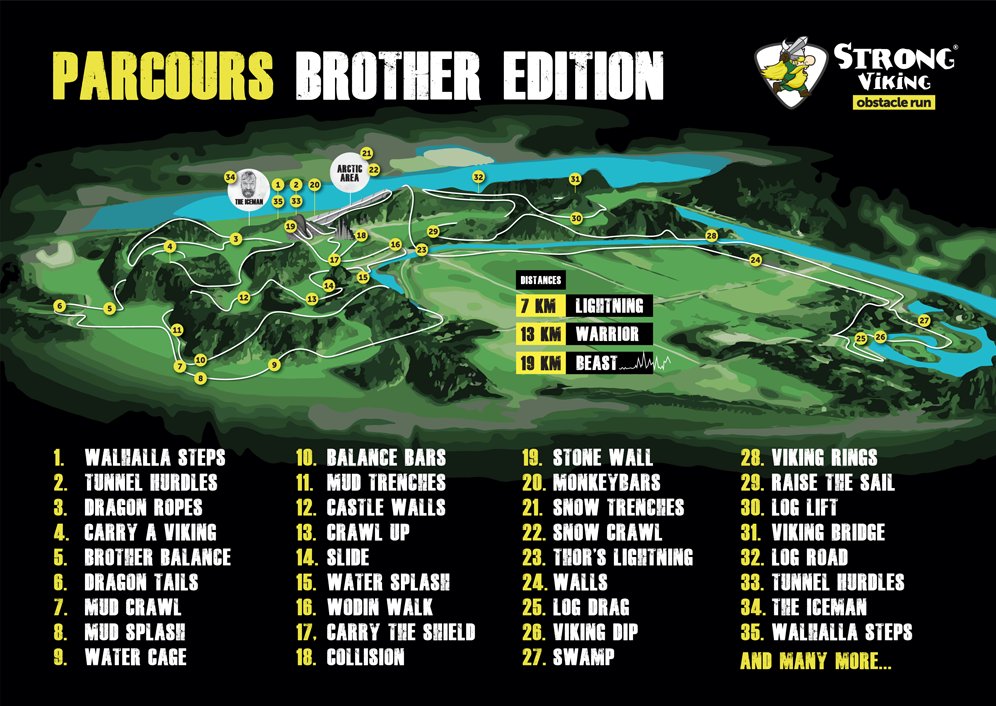 Meedoen aan Strong Viking staat al langer op onze verlanglijst, maar helaas passen de Mud, Hills en Water Edition niet in onze planning. Gelukkig wordt er nog een vierde run aan de kalender toegevoegd: de Brother Edition in oktober. We schrijven ons in voor de negentien kilometer. Een flinke uitdaging, want normaal kruipen Gerwin en ik tussen de twaalf en de vijftien kilometer door de modder.