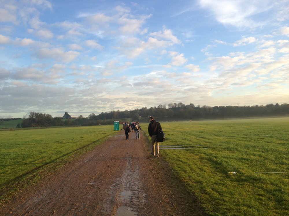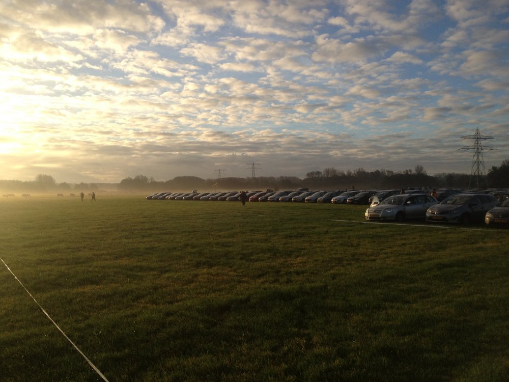 Rond 7.15 uur vertrekken we vanuit Groningen, want de start is al om 10.20 uur en het is zo’n twee uur rijden naar Spaarnwoude. De reis verloopt voorspoedig en bovendien is de bewegwijzering prima, dus iets na negenen rijden we de parkeerplaats op. Nou ja, parkeerplaats, een drassig weiland, waarvoor men maar liefst acht euro parkeergeld vraagt. Beetje jammer. En meteen nog maar een minnetje: men verdeelt de stukjes gras in de richting van de ingang. Dus hoe eerder je komt, hoe verder je moet lopen. Vreemd.