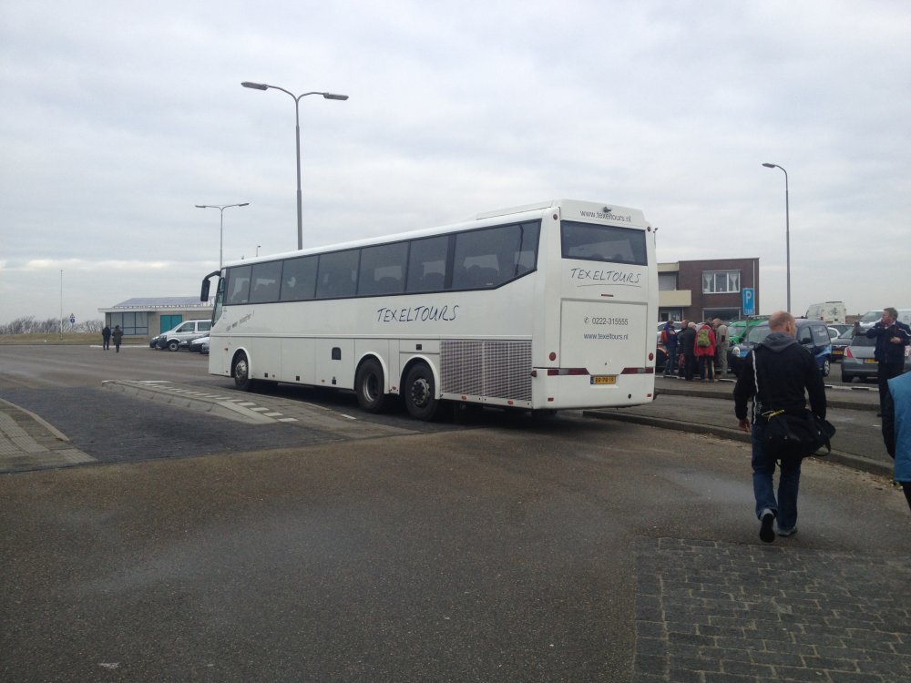 Iets na achten ga ik op weg naar Marum, want daar heb ik afgesproken met Arnold en Wouter. Eerst nog even een kopje koffie uit Arnolds superkoffiemachine en dan zetten we koers naar de haven van Den Helder. Daar kunnen we zowaar gratis parkeren, maar we moeten ons nog wel even haasten om de boot te halen. Een retourtje Texel met de TESO kost slechts 2,50 euro. Geen geld. Na een kort overtochtje van slechts twintig minuten arriveren we op het eiland en worden we per pendelbus naar de start vervoerd. Goed geregeld.