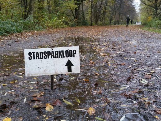 De volgende avond ren ik eigenlijk hetzelfde rondje, maar dan in omgekeerde richting. Vanwege onweer en harde wind liggen er veel bladeren op de weg en het lijkt inmiddels wel herfst in Sauerland. Na ruim zes kilometer is de weg deels afgesloten, maar ik heb natuurlijk geen zin om terug te lopen. Met een kleine omweg door het struikgewas en over het strand kan ik mijn rondje toch vervolgen. Afstand: 9,4 kilometer.