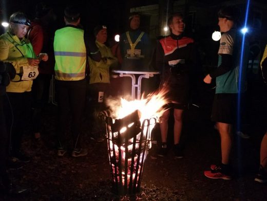Na zo’n vijf kilometer lopen we het bos in en krijgen we de eerste serieuze helling voor de kiezen. Aanvankelijk gaan we nog wel hardlopend omhoog, maar op de weg naar boven wandelen we ook een paar keer. Bij de eerste verzorgingspost bovenop kunnen we even bijtanken met onder meer lauwe zoete thee. Erg lekker.