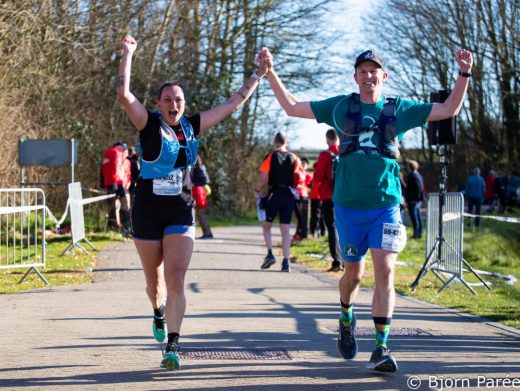 Na 14 uur ben ik bij de eindstreep. Ik krijg een fraaie medaille omgehangen en proost op de goede afloop met een alcoholvrij biertje. Wat een prachtige en memorabele tocht. Het was zwaar, maar ik had het voor geen goud willen missen. Organisatie van de Trailclub, vrijwilligers en medelopers bedankt voor de toffe dag. Guido en Ketura, enorm bedankt voor de gastvrijheid (en de zelfgebrouwen biertjes voor thuis). Tot een volgende keer!