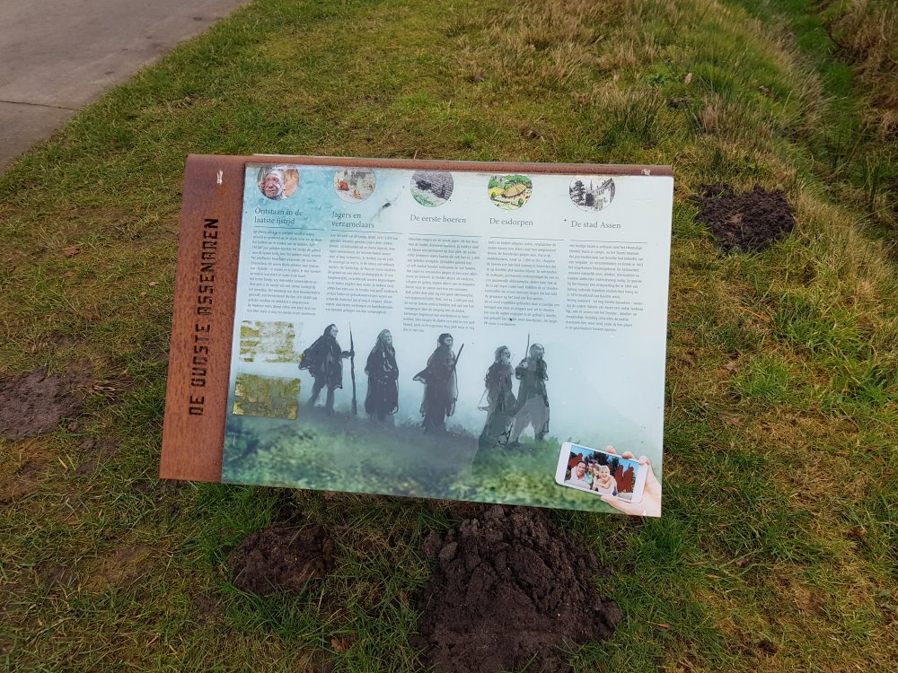 Op het Boerkamppad passeren we het kunstwerk ‘De Oudste Assenaren’ van kunstenaar Fouad Tan, dat de jagers uit de Steentijd verbeeldt. Het bijhorende infopaneel vertelt meer over de geschiedenis van dit gebied.
