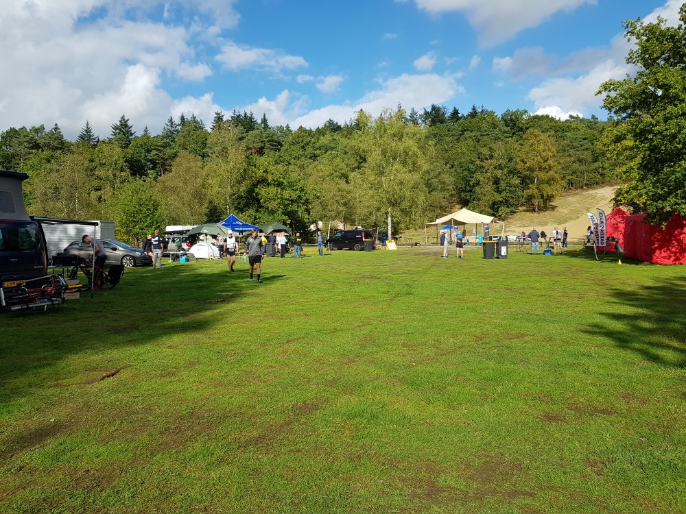 Aan de voet van de zandheuvel is het basiskamp. Hier kunnen we – dicht bij de start – onze eigen verzorgingspost inrichten met auto, camper of tent. Ik hou het simpel en stal mijn benodigheden uit in de kofferbak van mijn blauwe boodschappenbakkie. Een campingstoel erbij en klaar ben ik.