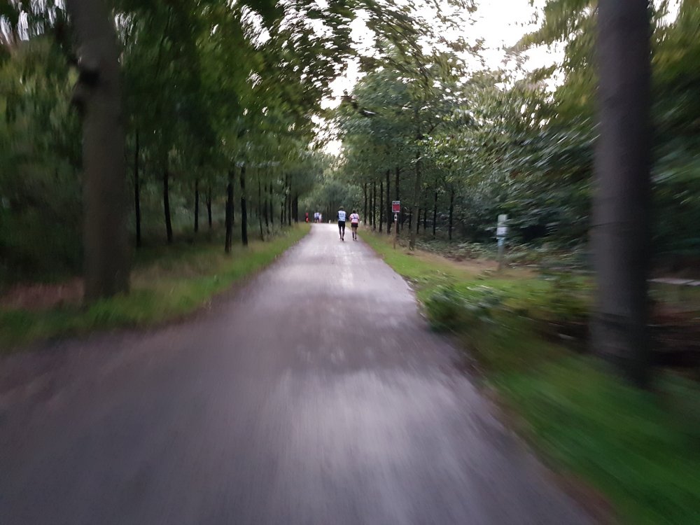 Het schemerige eerste rondje werken we nog af zonder hoofdlamp, maar daarna moet ie op. Ik vind hardlopen in de nacht altijd wel lekker. Rennen in de stilte en de bundel van je hoofdlamp heeft iets bijzonders.