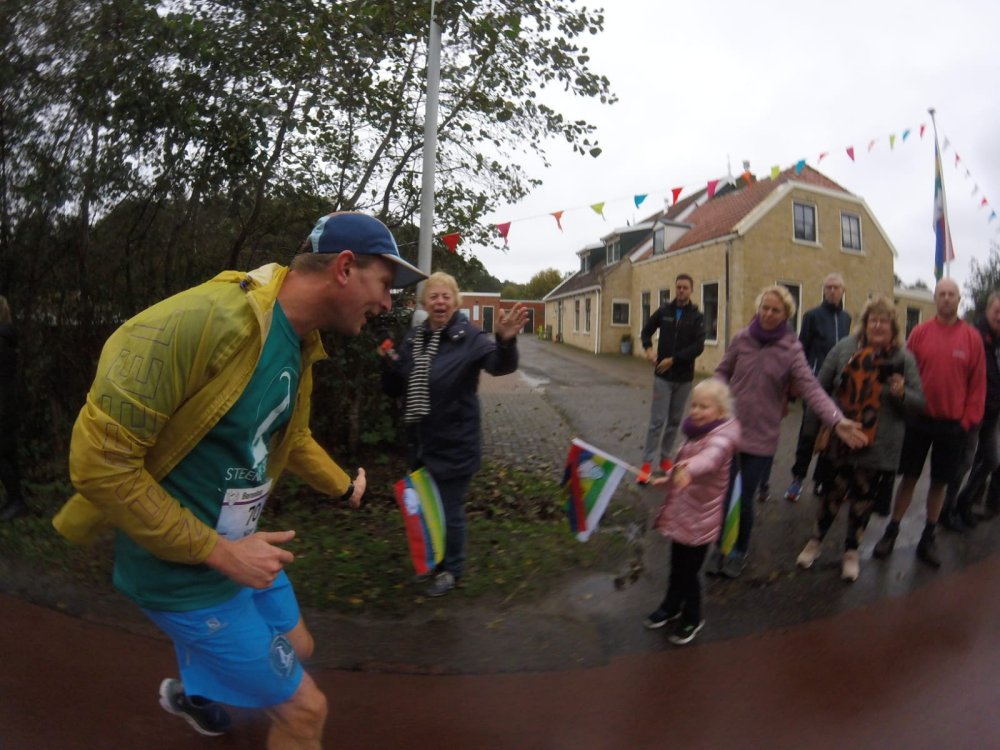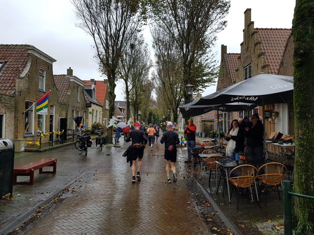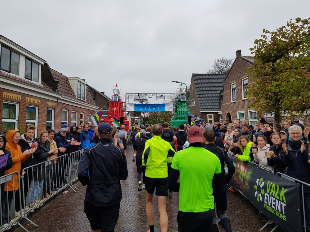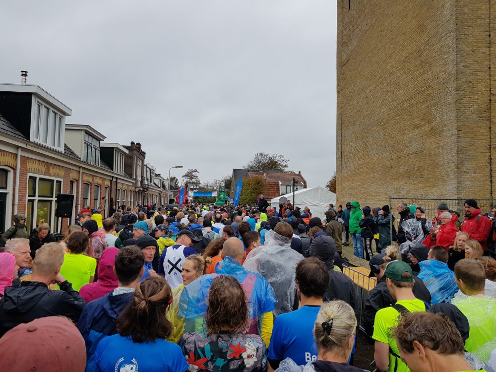 Zondagmorgen fiets ik naar de sporthal in het dorp en kleed me om. Vanaf daar loop ik naar het startvak in het centrum. De start/finish bevindt zich vanwege veiligheidseisen niet meer in de Torenstraat, maar is verplaatst naar de Brandarisstraat, ter hoogte van de brandweerkazerne. Dat betekent helaas dat we de unieke en sfeervolle laatste meters langs kroegen en muziek moeten missen. Heel jammer!
