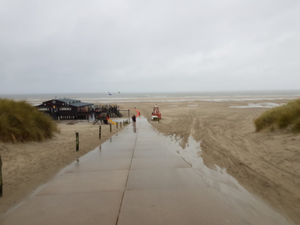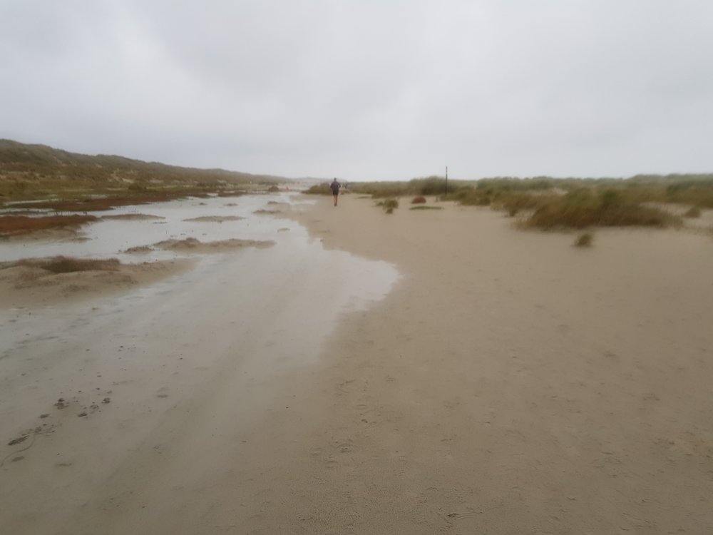 In het startvak tref ik Tamara en Bas, mijn medestrijders. Speaker Harm Noor vertelt dat vanochtend op het strand het lichaam is aangetroffen van een slachtoffer van het bootongeluk, dat ruim twee weken geleden plaatsvond. Een ander slachtoffer is nog steeds vermist. Vanwege de vondst hangen de vlaggen halfstok en de minuut stilte voor de start is indrukwekkend. Hopelijk wordt de laatste vermiste ook snel gevonden.