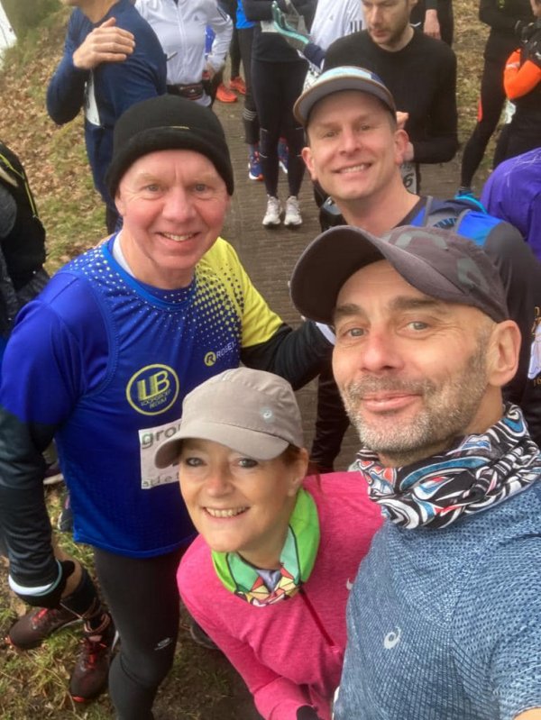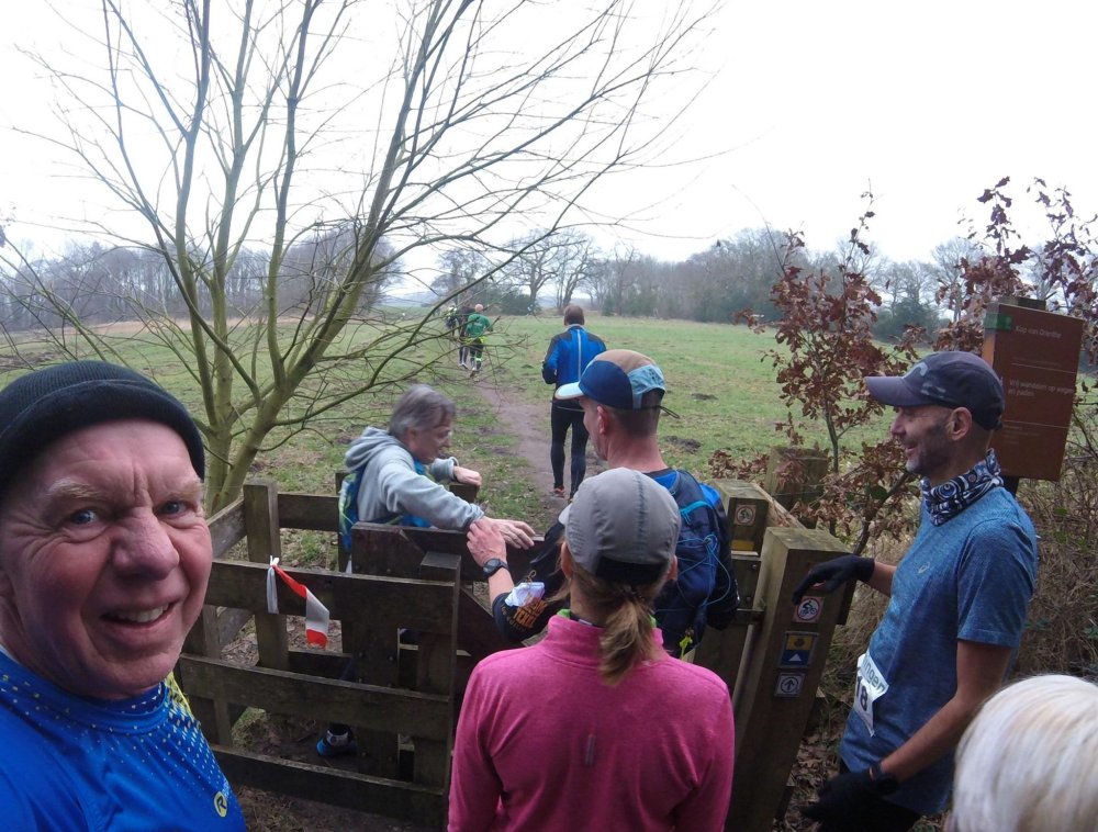 Zoals gebruikelijk vindt de start plaats op het smalle bruggetje. Met Mariska, Peter en mij maakt Edgar de startselfie en dan zijn we er wel klaar voor.