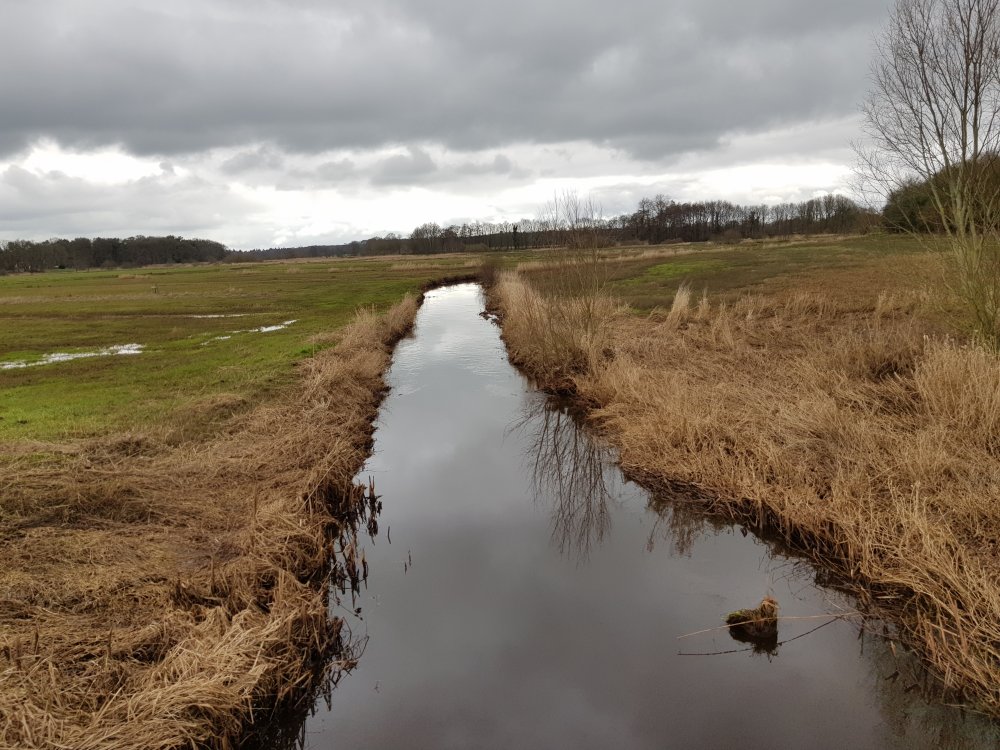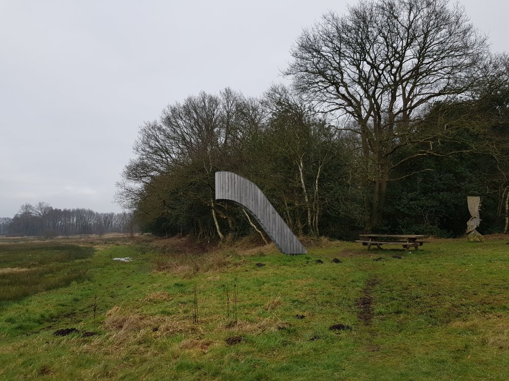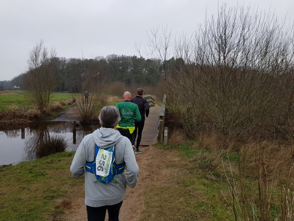 Daarna lopen we zo’n anderhalve kilometer verhard over de Melkweg, de Stuwweg en de Markeweg en steken het Groote Diep over. Net na de ‘preekstoel’, een nieuw uitkijkpunt, bereiken we de verzorgingspost halverwege.