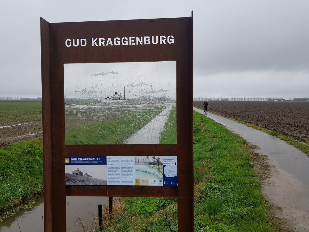 Met ruim een kwart van de tocht in de benen bereiken we Oud-Kraggenburg, een voormalig kunstmatig schiereiland. Vroeger diende het als vluchtplaats en lichtbaken. Het bevond zich aan het einde van een strekdam, die vanuit Genemuiden zes kilometer de Zuiderzee in liep. Nu is Oud-Kraggenburg een verhoging in het landschap met daarop de monumentale lichtwachterswoning.