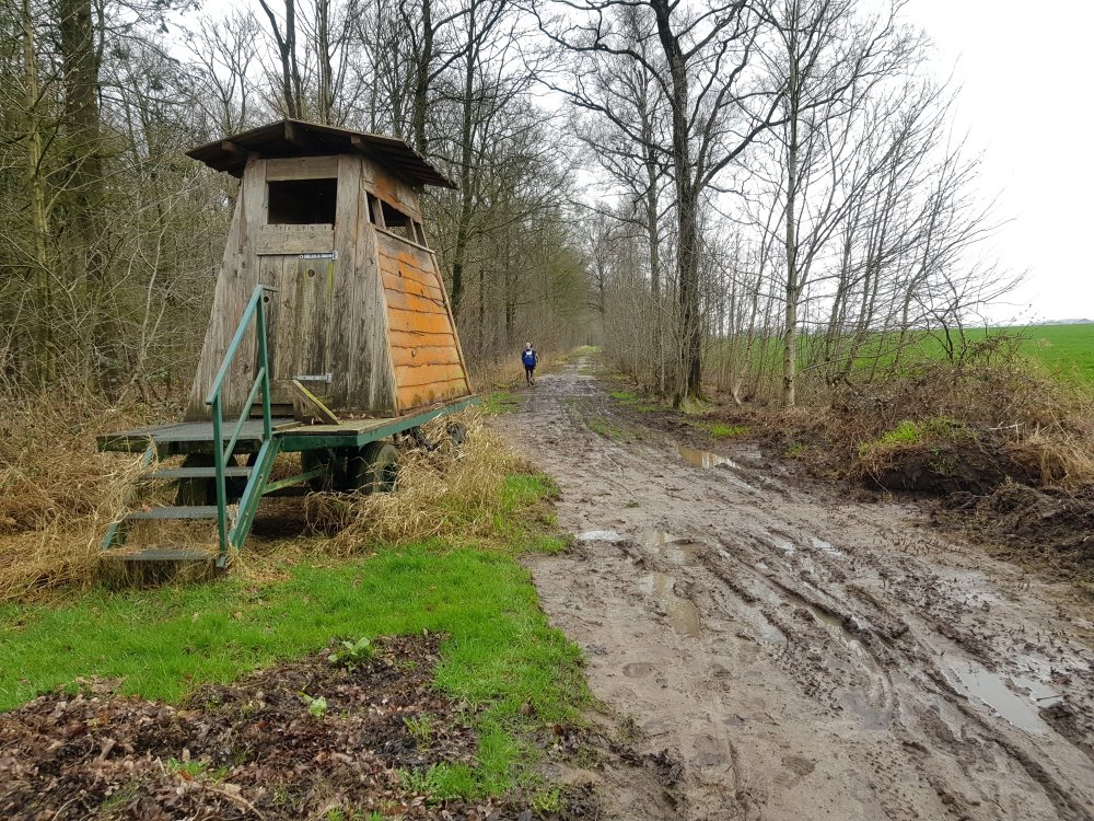 De 21 kilometer door het Kuinderbos zijn zwaar. Door de regen zijn veel bospaden veranderd in modderbanen en dan zijn wegschoenen toch minder geschikt. Ook maken we her en der wat hoogtemetertjes. Het is zonder meer een fraai deel van de route, maar ik ben ook wel blij als we de vierde verzorgingspost bereiken.