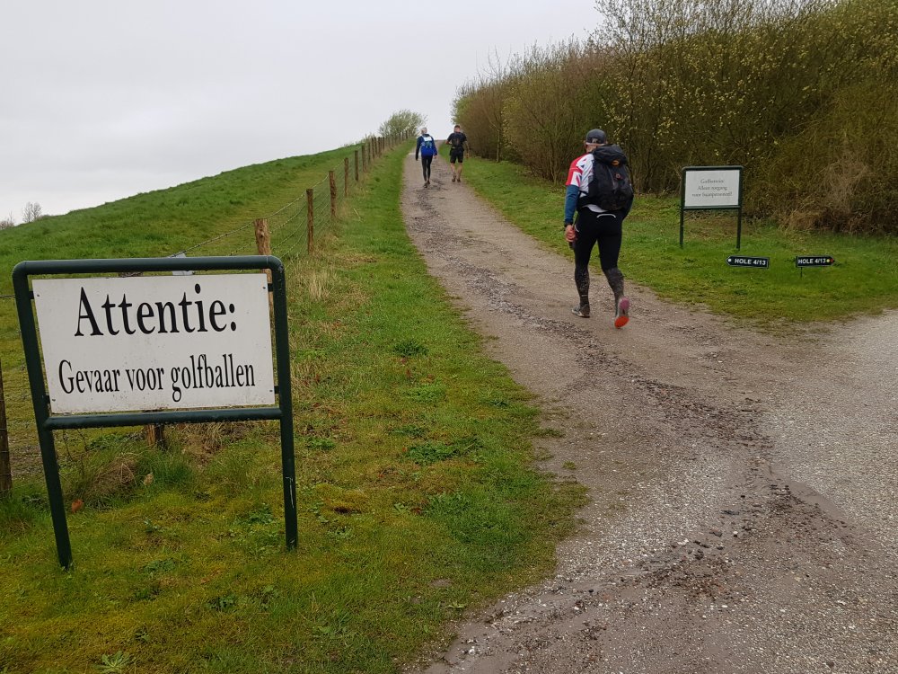Zoals gezegd is dit een lastig stuk van de tocht. De komende vijf kilometer lopen we veel over gras en klei en dat valt niet mee.