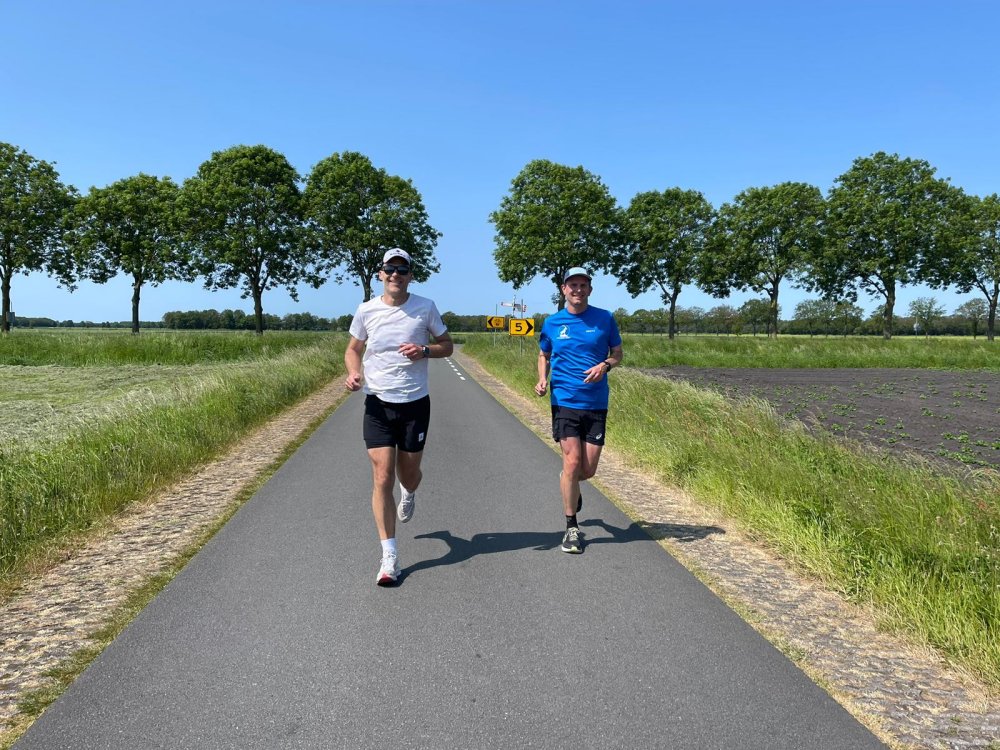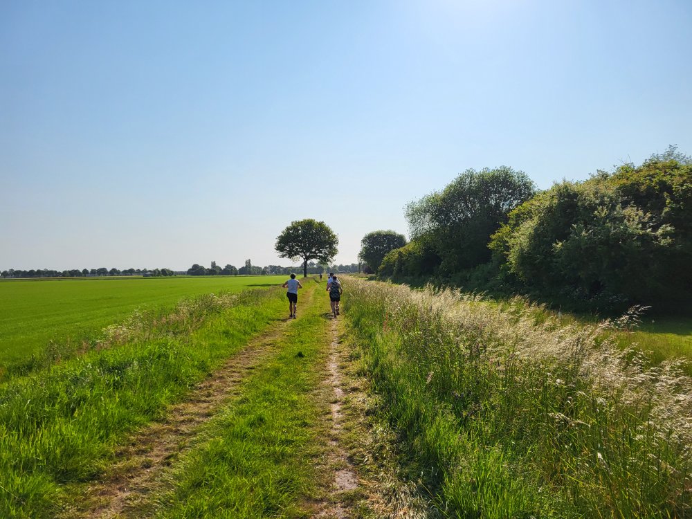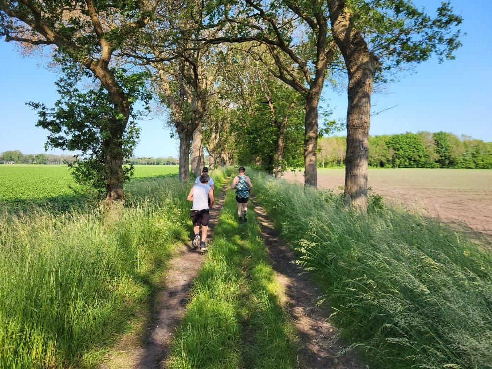 In het vijfde rondje haak ik even aan bij Sandra, die na een rustige start inmiddels op dreef is gekomen. Ze loopt echter een tikkie te snel voor mij en ik kies weer mijn eigen tempo. De kilometers door het Drentse land schieten voorbij en het gaat best lekker.