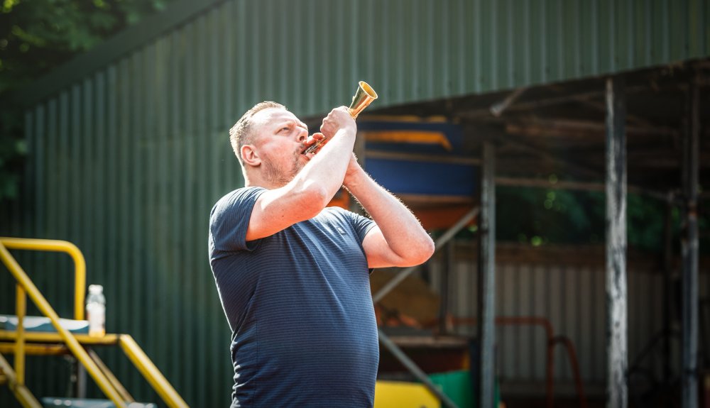 Jelle geeft het startsignaal (foto: Menko van der Leij)