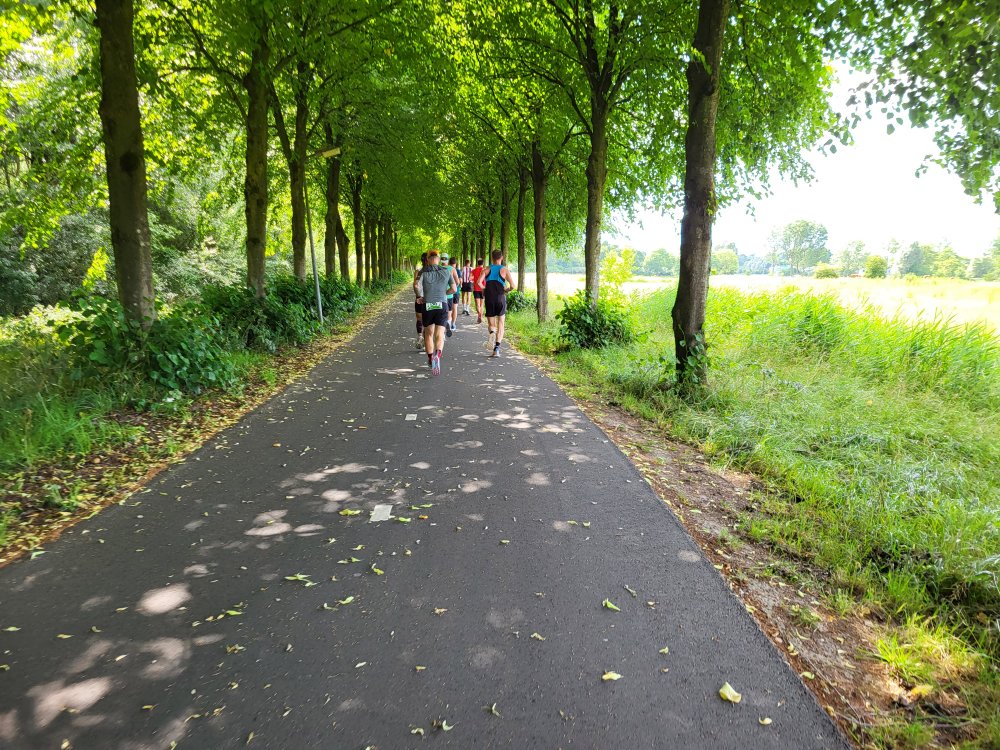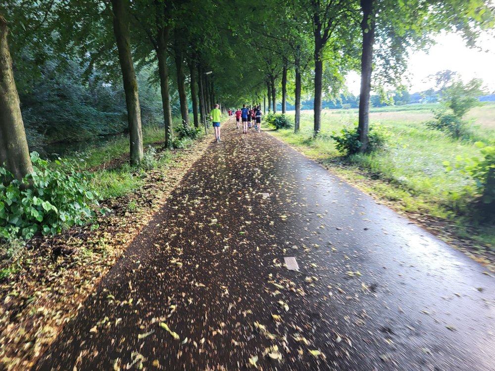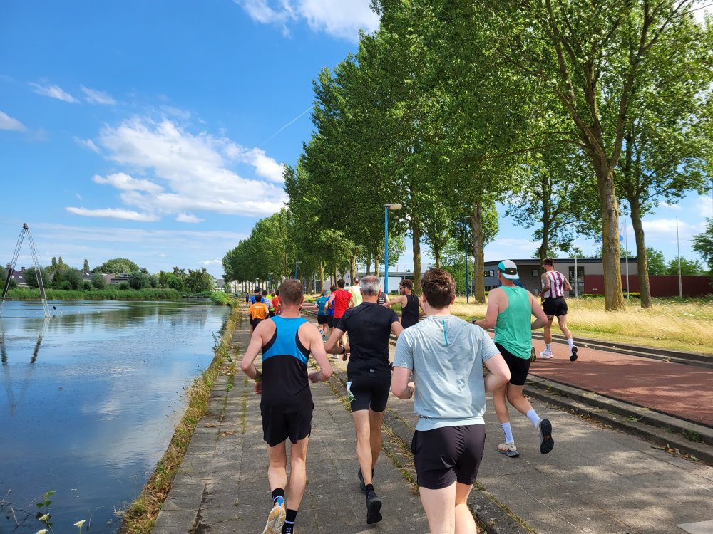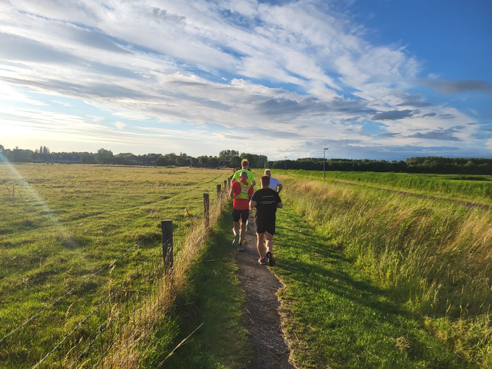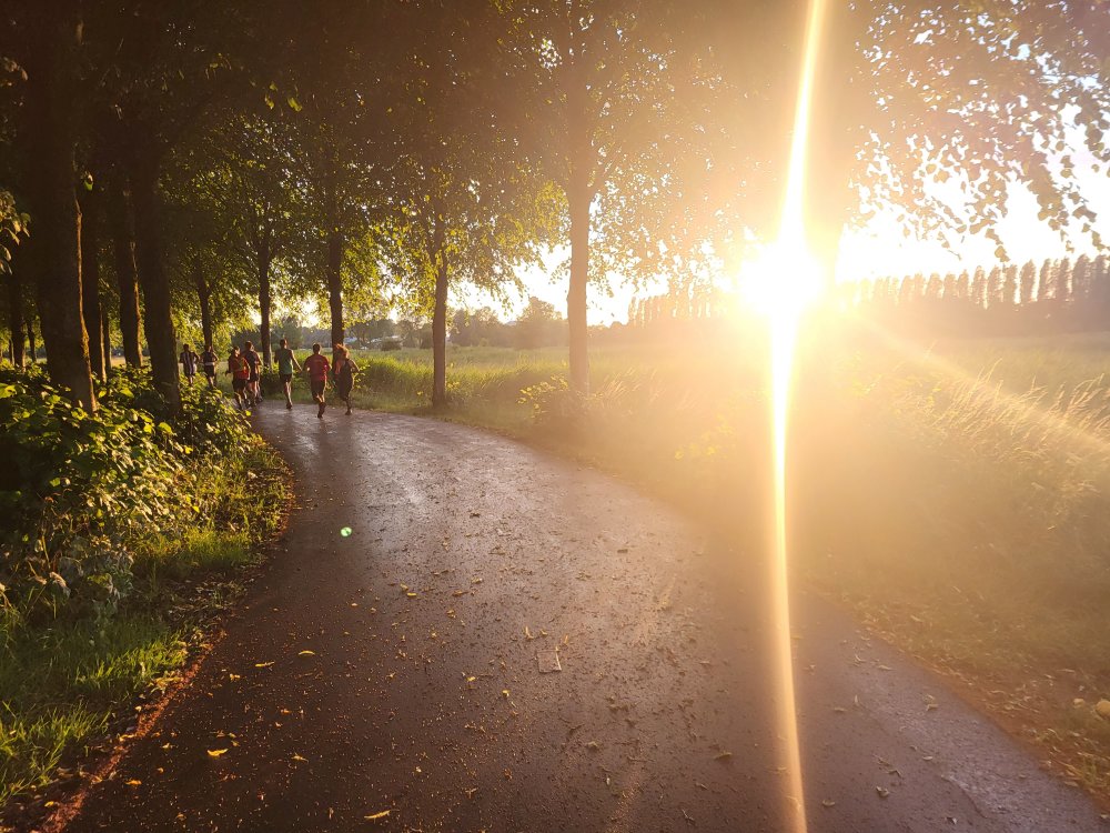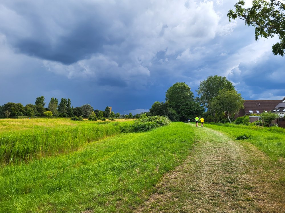 Want tijdens het derde rondje pakken zich donkere wolken samen boven Kardinge. Het begint te plenzen. Ik moet dan nog zo’n tien minuten rennen en word best nat. Als het nog harder gaat regenen zit ik gelukkig al in de tent. Bij de start van het vierde rondje klaart het geleidelijk weer op. Het is iets koeler geworden en dat bevalt mij wel.