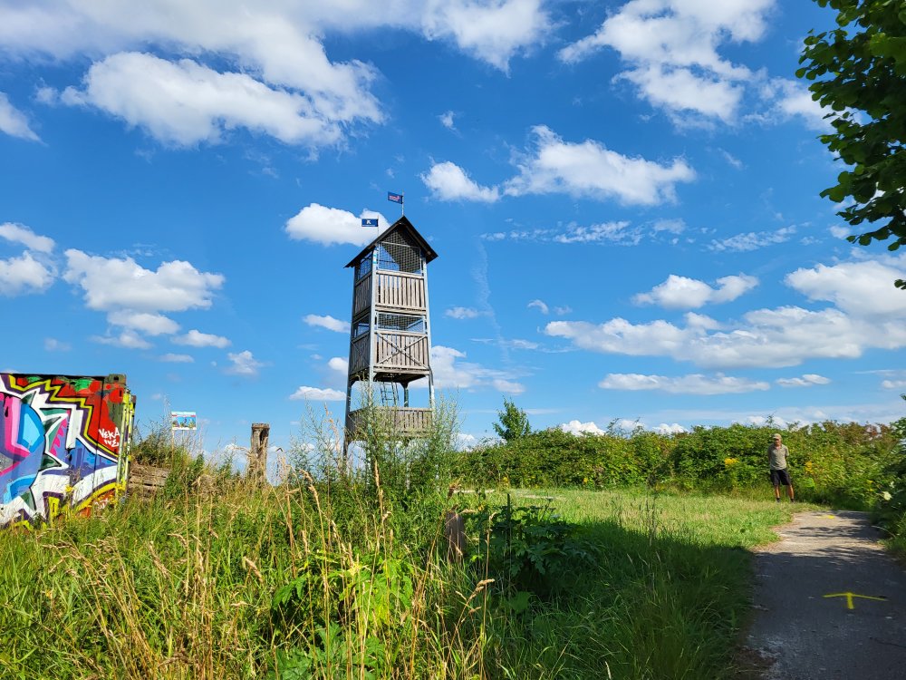 De avondrondjes vliegen voorbij. Er staan nog steeds veel toeschouwers langs het parcours en de stemming is prima. Bovenop de Kardingebult photobombt Tamara mij, als Peter foto’s maakt van de lopers die de top hebben bereikt.