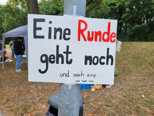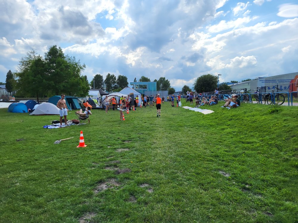 Daarna fiets ik snel naar huis om mijn hardloopspullen op te halen. Kleding, een stoel, een koelbox met drinken en eten, het moet allemaal mee. Weer terug in Kardinge tref ik Tamara, die haar eerste backyardultra loopt. We zetten onze stoelen naast elkaar in de zwarte tent. Ook zie ik veel bekende gezichten van vorig jaar. Jan verzorgt de briefing en dan klinkt om 16 uur het startsignaal.