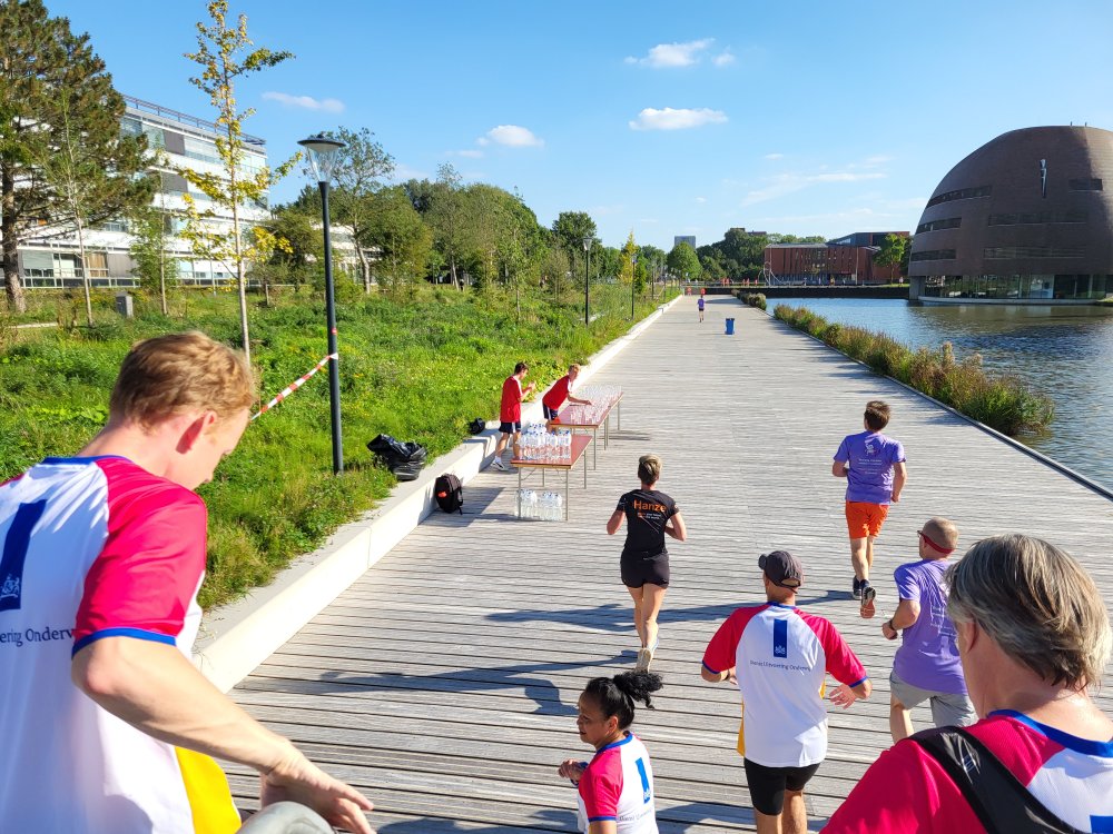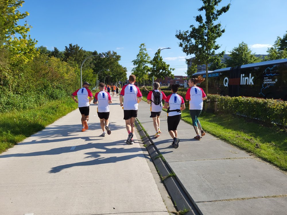 Via de WarmteCentrale Zernike lopen we terug naar de finish en komen met z’n achten gezamenlijk over de streep. We hebben het gedaan!