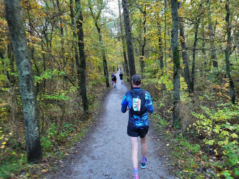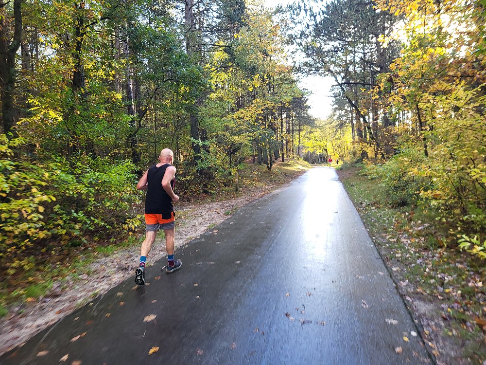 De 20 kilometer tikken we af in 2:02 uur. Zo gaat ie goed! Het zonnetje is doorgebroken en het wordt zelfs een tikkie warm. Uit de wind tenminste, want het begint wel wat harder te waaien.