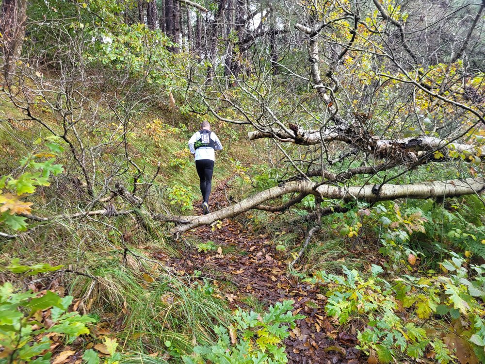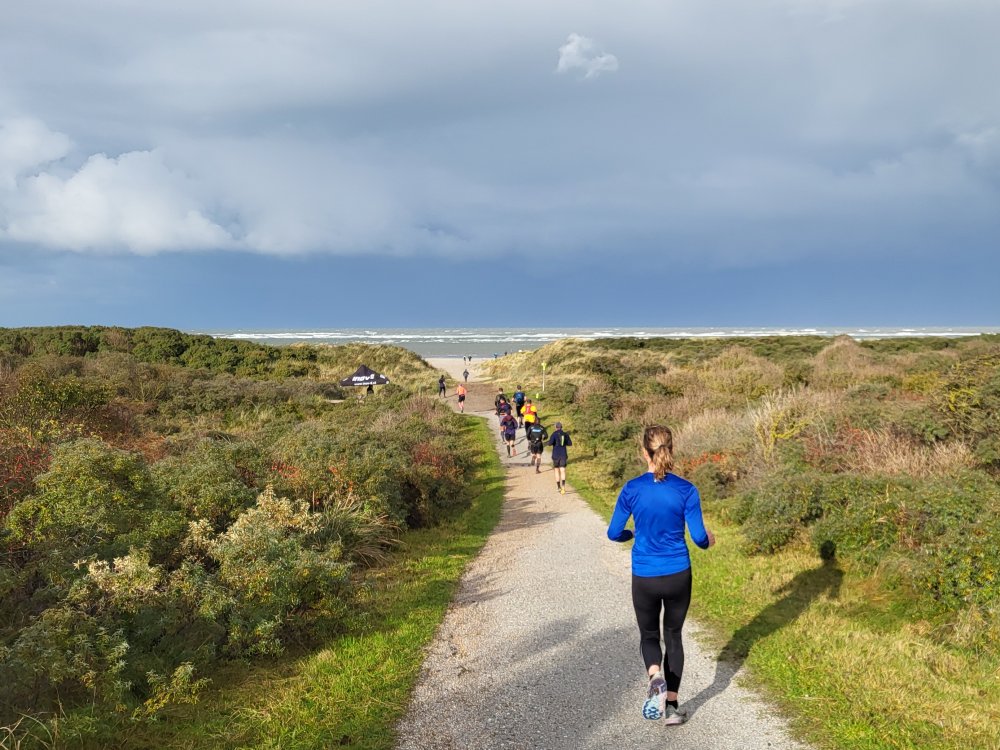 Daar gaan we voor een donker rondje over het eiland. Eerst een stuk door het bos en daarna via het dorp naar de vuurtoren en het strand. Omdat het eiland behoorlijk nat is heeft de organisatie het parcours een tikkie aangepast. Zo lopen we op het Westerstrand net even anders dan voorgaande jaren. Ook rennen we niet door de Derde Dennen, maar eromheen. Het zijn kleine aanpassingen die geen afbreuk doen aan de beleving.
