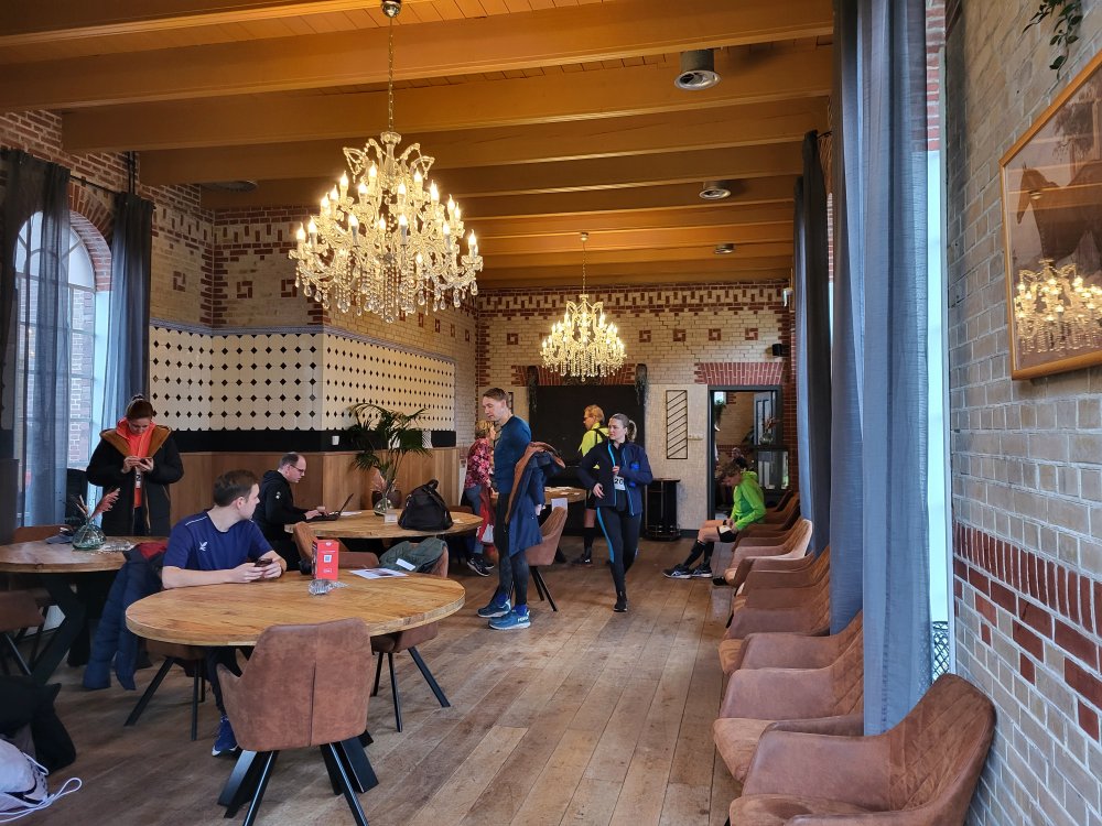 Rond half tien arriveer ik in Roden en haal mijn startnummer op in de Cuisinerie Mensinge. Al snel arriveert ook Tamara en we wachten rustig tot het moment dat we naar de start mogen. In de tussentijd kletsen we bij met allerlei bekenden, want die zijn volop aanwezig bij deze gezellige loop.