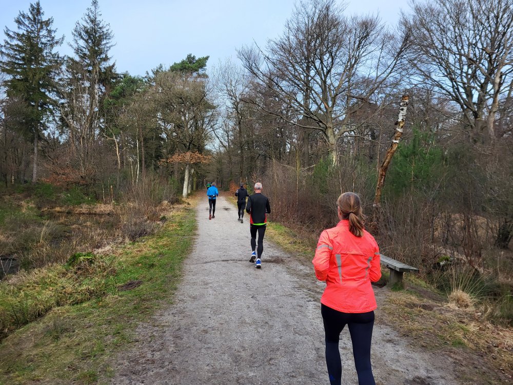 We rennen naar het Mensingebos voor vijf rondjes van 8,5 kilometer. Het parcours ligt er fantastisch bij. Het is vrijwel overal droog en zelfs op het technische stuk halverwege is het nauwelijks modderig. Hoewel ons tempo niet eens zo hoog ligt, lopen Tamara en ik bij vlagen wel een tikkie te snel voor ons gevoel.