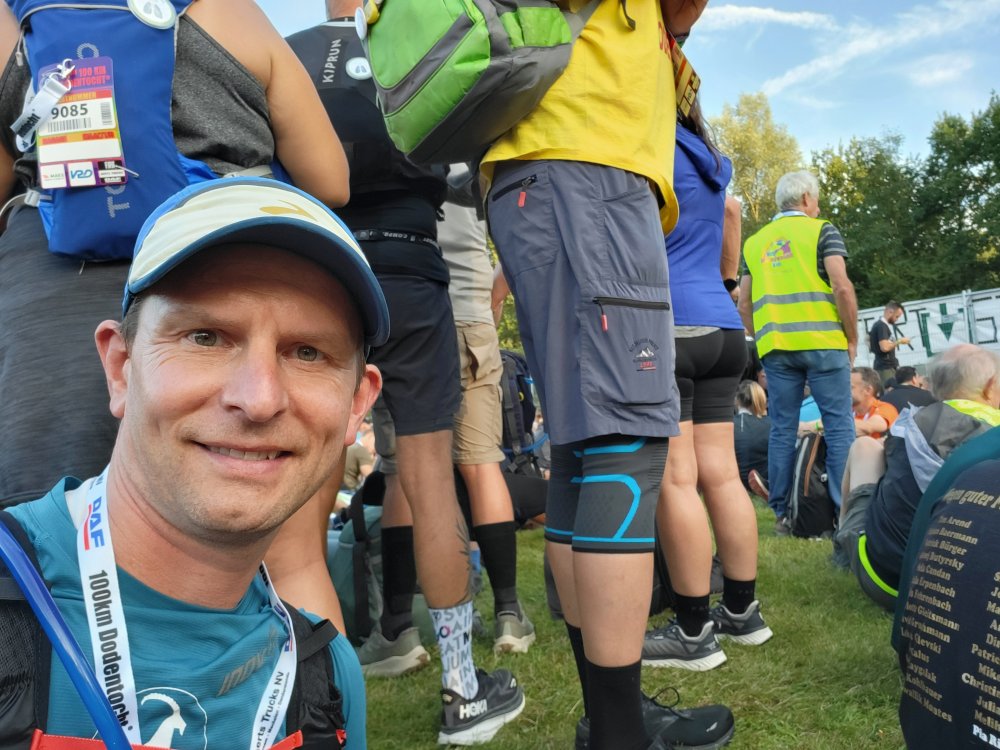 Voor dit jaar had ik de Dodentocht eigenlijk nog niet ingepland, maar we zijn op vakantie in België; op drie kwartier rijden van de start. Dan kriebelt het toch wel. Het populaire evenement met zo’n 13.000 deelnemers is echter al sinds maart uitverkocht. Gelukkig komen er in juni weer startnummers vrij van afhakende inschrijvers via de DoToSwap. Dat is een mooi systeem; de transactie verloopt volledig via de organisatie, voor de reguliere prijs, dus geen kans voor woekeraars. Ook voor de ticketswap is de belangstelling natuurlijk enorm, maar uiteindelijk kan ik het startnummer van een Belgische mevrouw overnemen. Hoera!