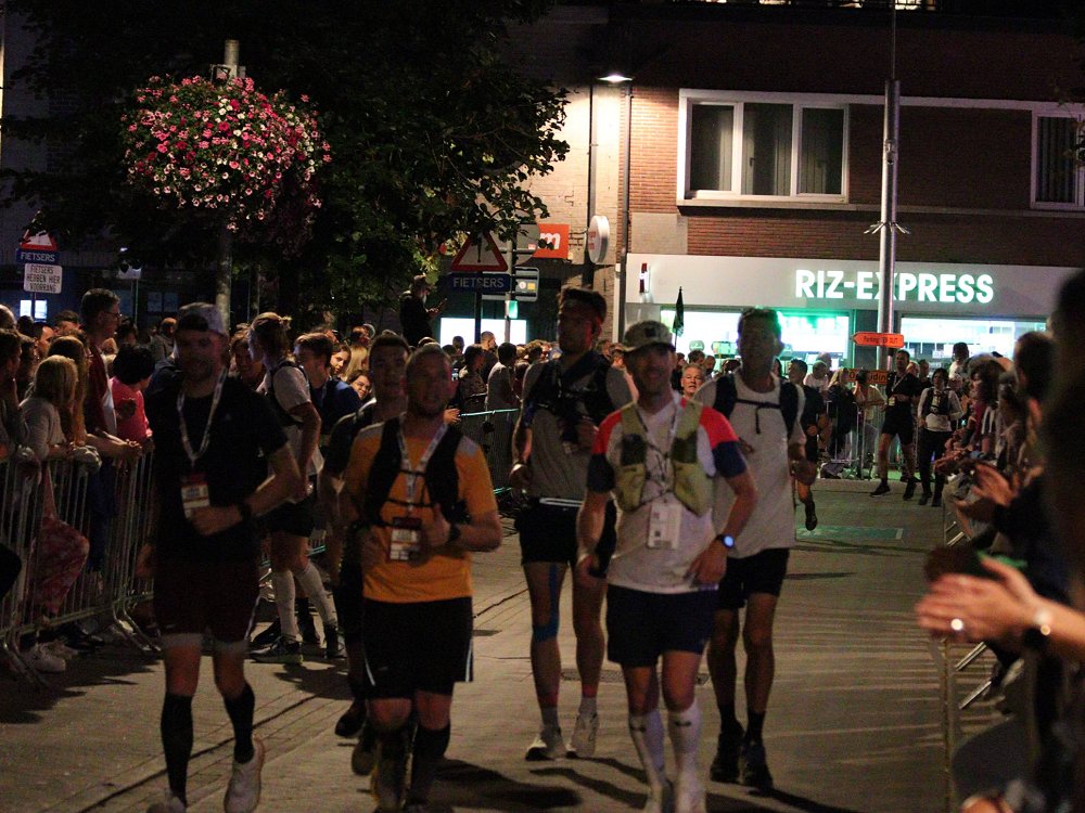 Stipt om 21.00 uur is de start en stormt iedereen het parcours op. Gelukkig sta ik redelijk vooraan en hoef ik alleen de eerste kilometer om de wandelaars te slalommen. Daarna bevind ik me tussen louter hardlopers. Eigenlijk had ik voorgenomen om relatief rustig te lopen, maar daar komt met mijn beginsprint en alle adrenaline weinig van terecht. Mee in de flow dan maar en dat gaat eigenlijk best lekker. Het Belgische publiek is dan ook helemaal geweldig. Wat veel enthousiaste toeschouwers langs de kant, met eigen geluidsinstallaties of gewoon met aanmoedigingen bij de voordeur. Overal staan wel mensen. In de eerste uren na de start natuurlijk, maar eigenlijk de hele nacht door word je aangemoedigd. Echt fantastisch.