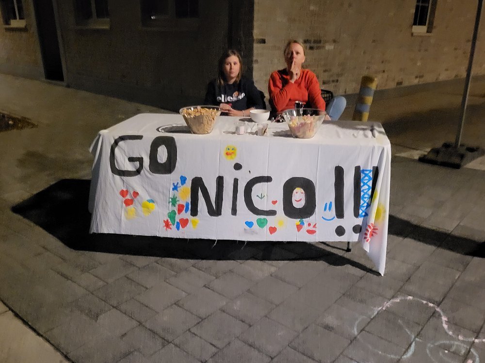 Verderop lopen we een heel stuk langs de Schelde, over het landgoed van kasteel d’Ursel en bereiken na ruim 20 kilometer de tweede verzorgingspost in Wintam. Hier krijgen we een blikje icetea. In het dorp Kalfort spot ik twee dames met het spandoek ‘Go Nico!!’. Heel attent! Ik bedank ze hartelijk en bereik na zo’n 30 kilometer de derde verzorgingspost. Ik pak een stuk koek en een puddingtaartje. Snel wandel ik weer verder, want ik wil niet te lang blijven hangen.