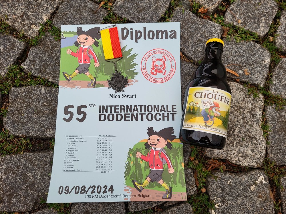 In Bornem tik ik af na 12.18 uur. Ik ontvang een heuse wandelmedaille, een flesje kabouterbier en een diploma voor boven m’n bed. 🥳