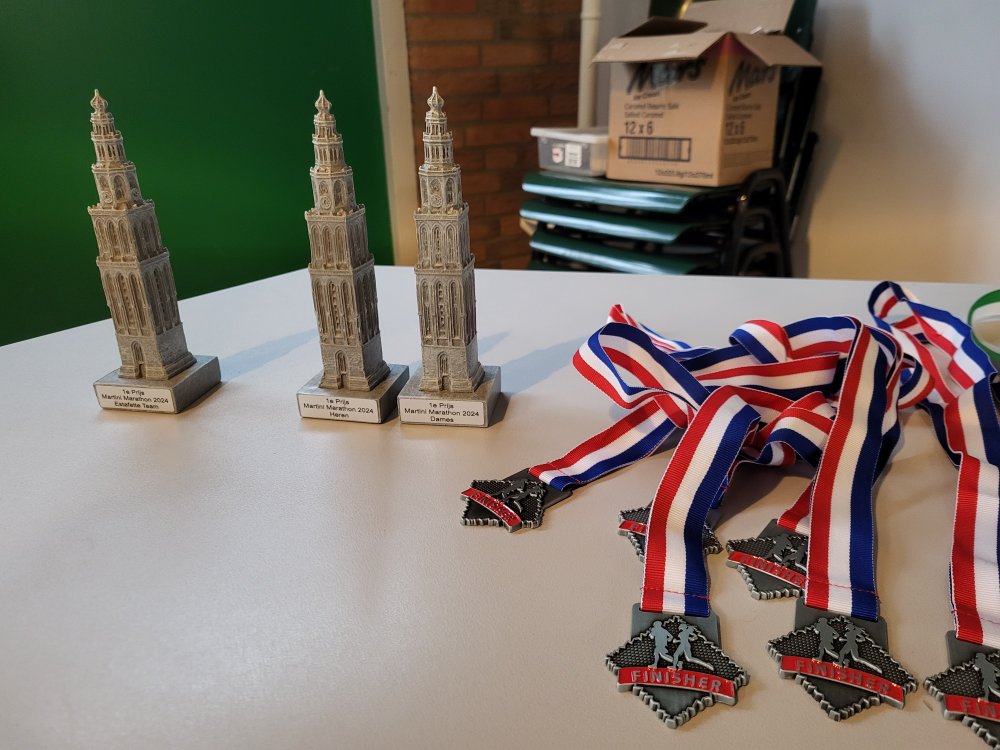 Voor alle finishers een medaille en voor de winnaars een Martinitorentje.