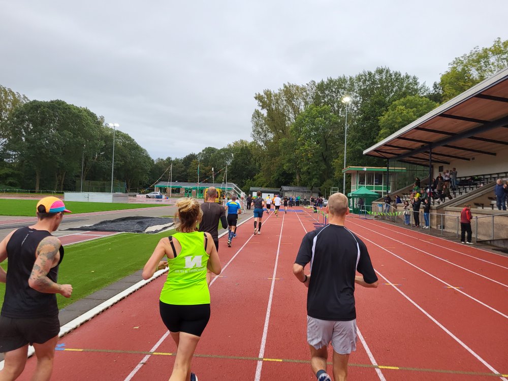 Eigenlijk valt dat best mee. In de eerste helft van de race hangen mijn rondetijden redelijk constant rond de twee minuten. In de tweede helft gaan mijn rondjes geleidelijk iets langzamer, maar het verval is te overzien. Helaas heb ik last gekregen van mijn rug, waardoor ik gevoelsmatig nogal houterig loop. Dankzij paracetamol kan ik gelukkig wel door blijven dribbelen. Daardoor blijft een eindtijd onder de vier uur haalbaar.