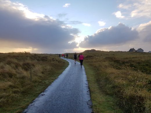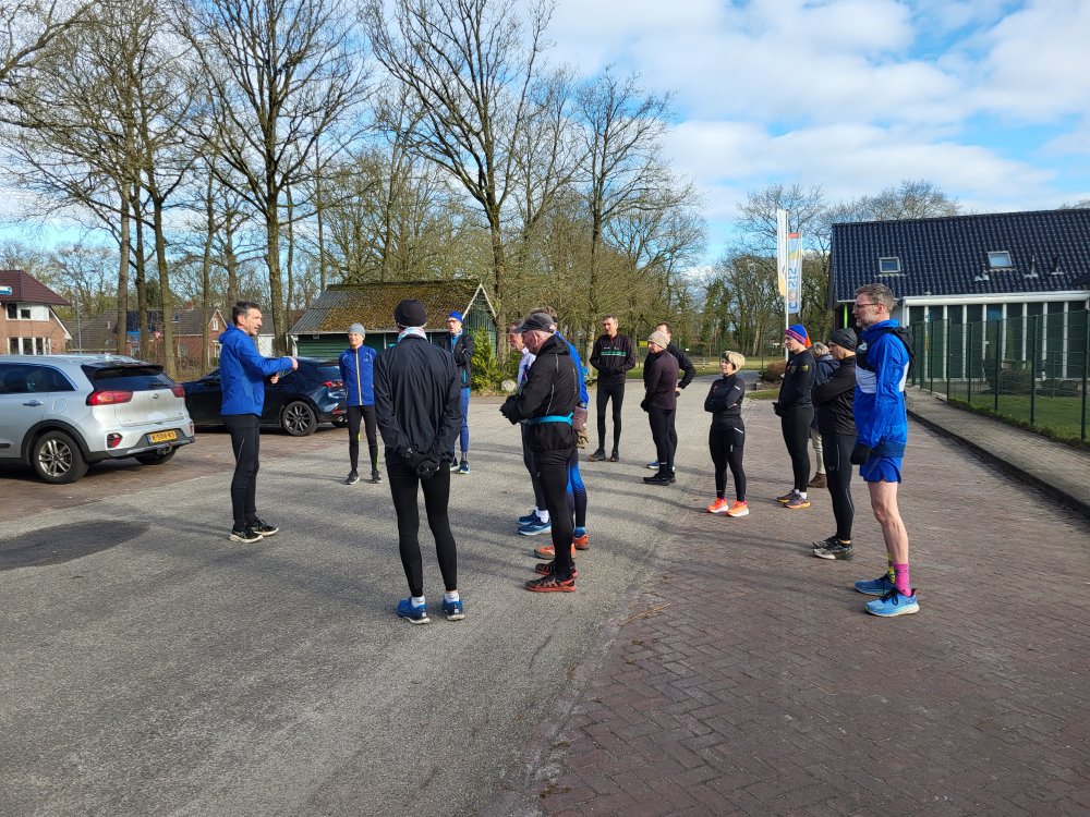 Op vrijdagochtend pik ik Robert Jan op in Groningen. Hij wil een stukje meelopen en ziet wel hoe ver hij komt. Zo’n twintig minuten later zijn we in Roden. Daar starten uiteindelijk zestien deelnemers aan deze vrijdagmarathon. Voor mij is het de eerste serieuze testloop na het zweepslagje in mijn kuit zo’n drie weken geleden. Ook voor mij is het dus zien hoe ver ik kom.