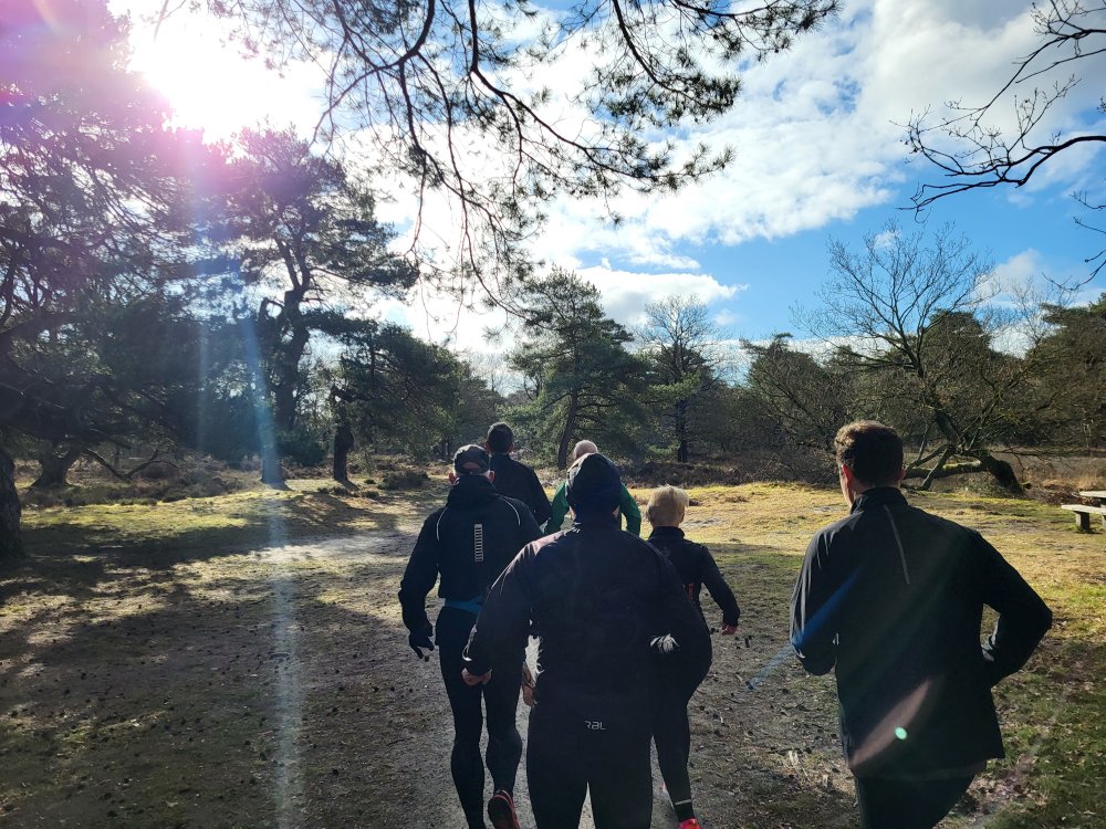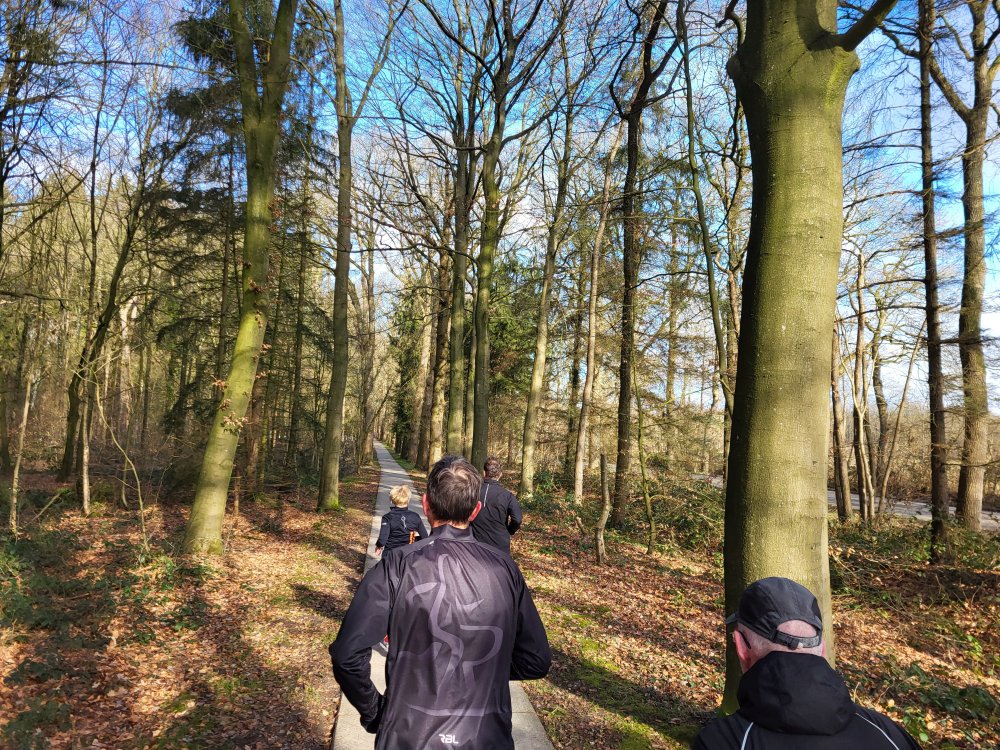 Om precies 9.31 uur starten we voor tien rondjes van 4,2 kilometer door het fraaie Mensingebos. Het is een tikkie fris en ik heb mijn handschoenen soms nodig, maar de korte broek blijkt een goede inschatting.