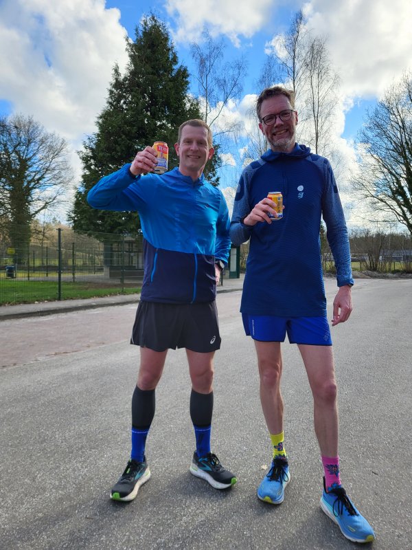 Na ruim vier uur en veertig minuten bereiken we voor de laatste keer de parkeerplaats. Robert Jan heeft lekkere biertjes gekocht om te proosten op de goede afloop. Eigenlijk ging deze marathon best goed. Dat geeft vertrouwen voor de geplande loopjes in april en mei.