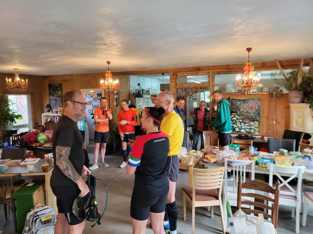 Alle deelnemers hebben iets lekkers meegenomen om bij te dragen aan het lopend buffet. Dat zoveel ultralopers ook nog eens ware keukenprinsessen (m/v) blijken te zijn overtreft onze stoutste verwachtingen. De buffettafel staat propvol met overheerlijke gerechten.