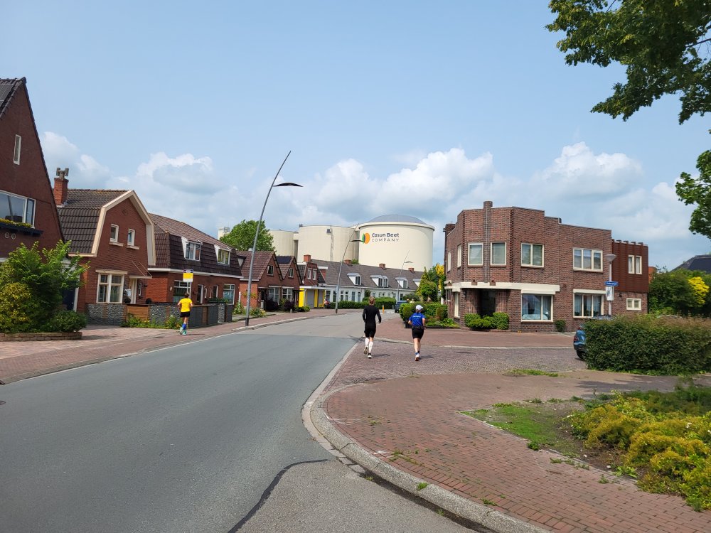 De laatste ronde voert grotendeels langs het prachtige Reitdiep en de Reitdiephaven. Aan het begin krijg ik helaas een flinke stortbui over de kop. Even schuilen onder een boom en weer door. Het beste is er wel een beetje vanaf, maar toch vliegen de kilometers voorbij. Na het bezichtigen van de Tiny Houses op het Westpark zit het loopgedeelte van dit evenement erop.