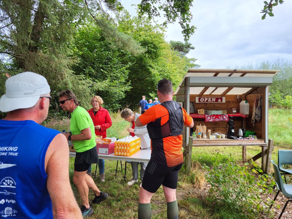 Om elf uur is het tijd om te starten aan de 10 mijl. In de eerste kilometers blijft de groep deelnemers dicht bij elkaar. Met organisator Jan Johan klets ik de eerste kilometers weg. Voordat ik het weet zijn we al bij de eerste verzorgingspost.