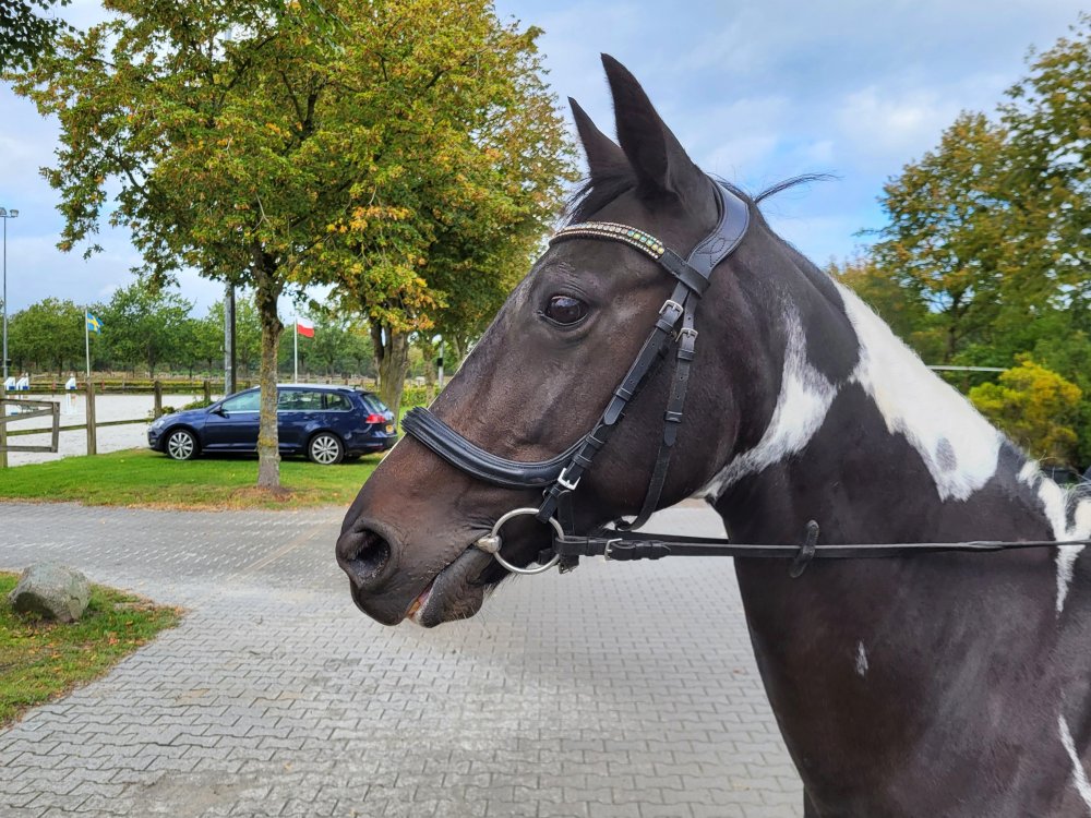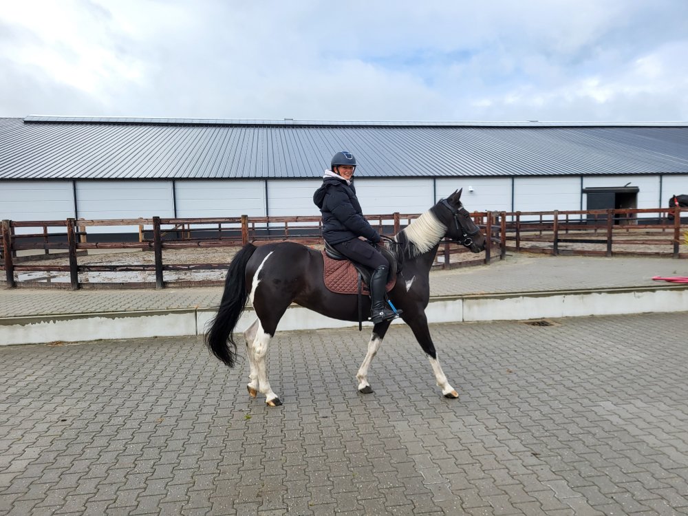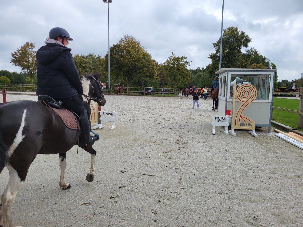 Rond kwart over tien arriveren we bij het Hippisch Centrum in Exloo en wandelen naar de start. Omdat we nog niet aan de beurt zijn mag Tina eerst even warmlopen in de bak. Net na half elf worden onze namen omgeroepen en lopen we naar de start.