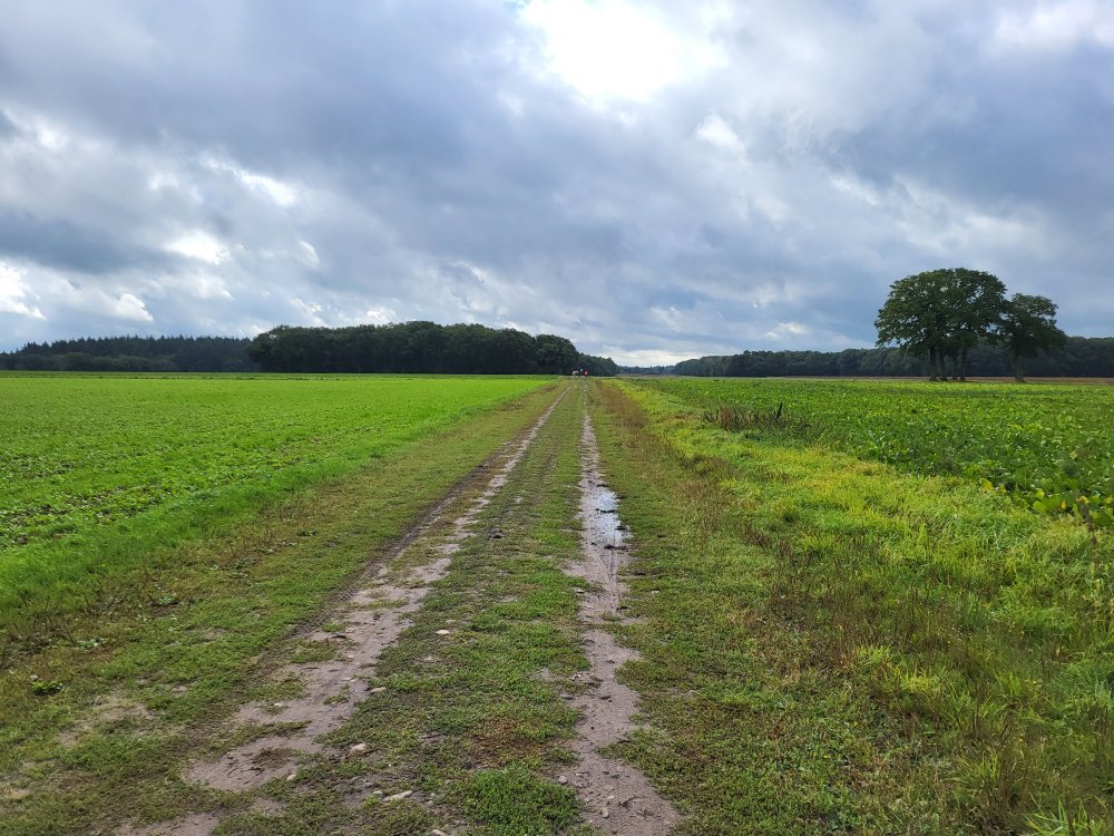 De rest van de route voert grotendeels over bos- en graspaden. Gelukkig blijft het droog en zijn de paden goed begaanbaar. Zo kunnen we lekker doorlopen.
