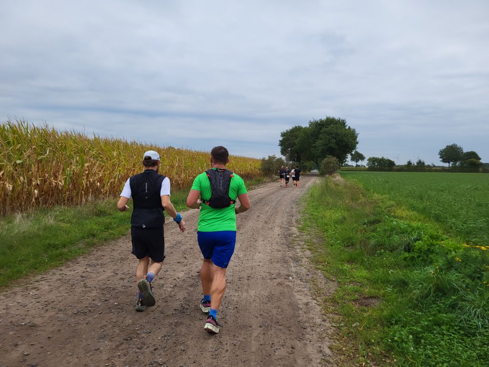 De laatste ronde alweer en gelukkig ook de kortste ronde. Zoals gezegd lopen we een groot deel in tegengestelde richting van de noordlus, dus dat is wederom highfiven met andere deelnemers. Na Oiste komen we door de dorpen Magelsen, Eitzendorf en Martfeld op weg naar het eindpunt in Schwarme.