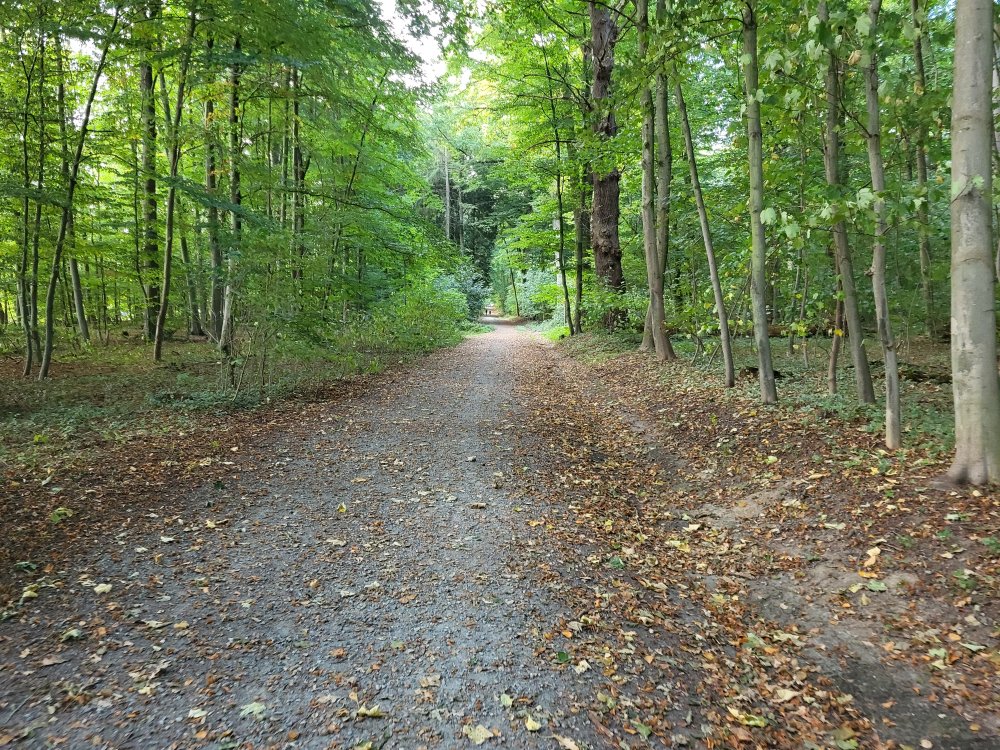 We beginnen met de zuidronde. Die voert veelal over verharde paden langs en door diverse bosgebieden, maar we lopen ook geregeld over graspaden. Met 140 meter hoogteverschil is deze lus niet vlak. Met name het Rutental is een schilderachtig stuk. Ook komen we langs het geografische middelpunt van Niedersachsen.
