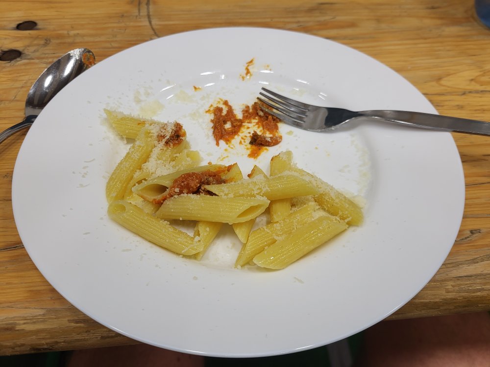 Een bordje pasta.