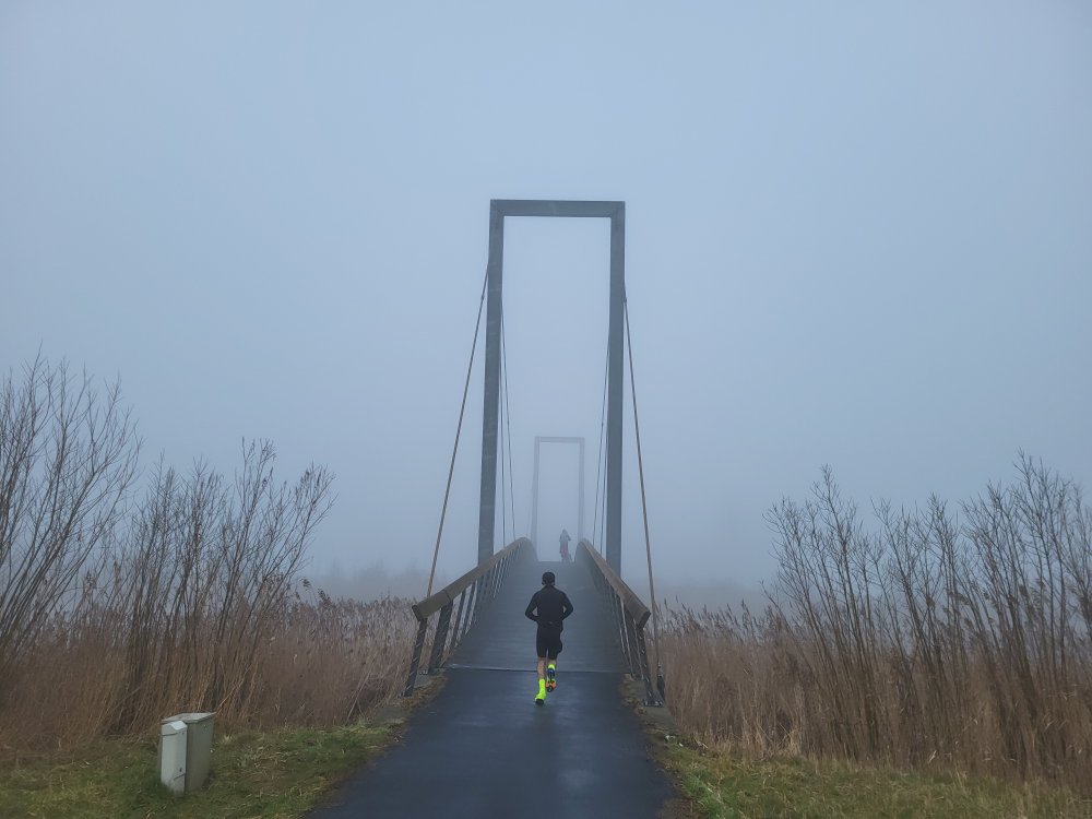 De tweede helft van deze marathon is een rondje om het Oldambtmeer. Zoals gezegd is het uitzicht helaas beperkt. Na zo’n dertig kilometer rennen we over de Pieter Smitbrug, met 800 meter de langste fietsbrug van Europa. Via Blauwestad en de Groningse stuwwallen bij Finsterwolde lopen we terug naar Oostwold. Daar tik ik aan in 3:48 uur. Kon minder!